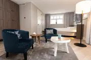 Ruime suite voor 2 personen op de bel etage met balkon en eigen badkamer. Met een heerlijk kingsize boxspringbed (180x205) , een comfortabel zitje en een eethoek. Het klimaat in de kamer regel je zelf met de airconditioning en de vloerverwarming. Deze suite heeft een balkon (zonder zitmeubilair). De suites zijn hondenvrij en niet ingericht op kinderen of baby's. Je deelt de voordeur, het trappenhuis en de veranda voor het huis met de vaste bewoners. Verder zijn er geen gezamenlijke ruimtes.