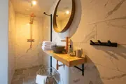 De luxe Tuin Suites liggen op de begane grond, aan de zuid- en oostzijde van de boerderij. De kamer is ruim met een tweepersoons bed (180 x 200 cm). Badkamer met inloopdouche, wastafel en toilet. Er is een Smart TV (32 inch), open kast, minibar met een lokaal & bewust assortiment, kluisje, een waterkoker, slow coffeemaker en verschillende theespecialiteiten. Via openslaande deuren kom je in de tuin met een eigen terras en zitje. De details in de kamer verraden de historie van de boerderij. Zo zijn de authentieke balken uit de 18e eeuw hier nog deels in het zicht.