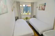 De woonkamer heeft een zithoek met tv. Er is ook een eethoek. De open keuken is ingericht met magnetron, waterkoker, koffiezetapparaat, Senseo en koelkast met vriesvak. Er zijn twee slaapkamers, waarvan één met twee eenpersoonsbedden en een wastafel. De andere slaapkamer heeft een eenpersoonsbed en een wastafel. De badkamer heeft een douche en toilet. Dit vakantiehuis heeft een groot, afgesloten terras. Tuinmeubilair is aanwezig.