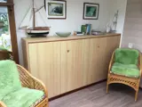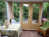 De knusse woonkamer is voorzien van een zithoek met tv. Er is een serre met eethoek. De kleine keuken is ingericht met combimagnetron, koelkast met vriesvak, koffiezetapparaat, Senseo en waterkoker. De slaapkamer met 1 tweepersoons bed (140 x 200) en tv is bereikbaar via een schuifdeur. De badkamer heeft een douche en toilet. Dit knusse vakantiehuis heeft een tuin met terras. Tuinmeubilair is aanwezig.