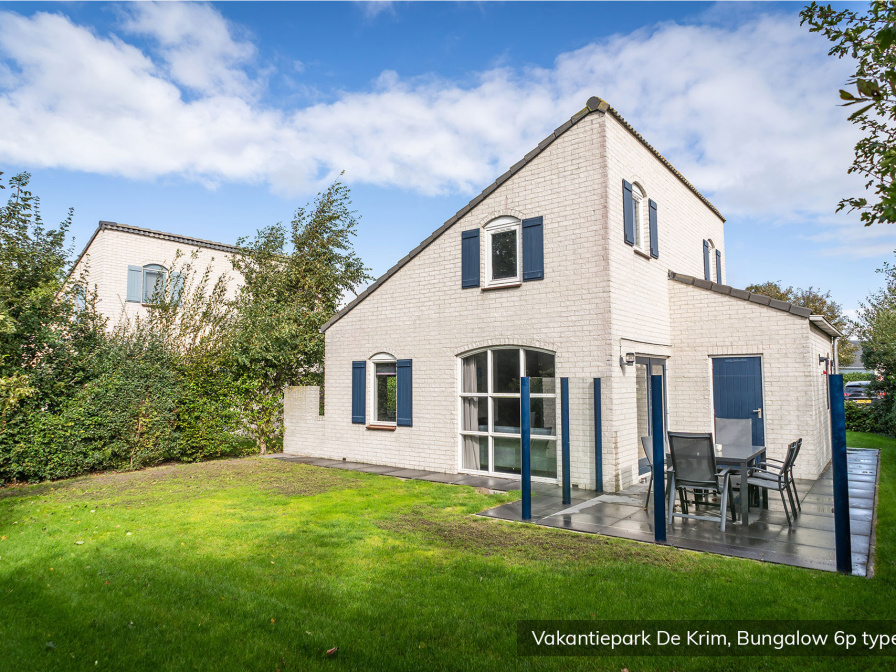 De vrijstaande bungalows van het type E liggen centraal op het park ter hoogte van het sport/ speelveld of aan de rand van het park, vlakbij de Krimweg. De woonkamer is voorzien van zithoek met open haard en tv. Ook is er een eethoek. De keuken is ingericht met vaatwasser, magnetron en koelkast. Er is een slaapkamer met twee eenpersoonsbedden. De badkamer heeft een douche, wastafel en toilet. Op de bovenverdieping zijn twee slaapkamers met elk twee eenpersoonsbedden.