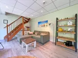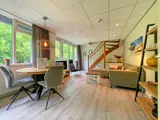 De woonkamer is voorzien van zithoek met LCD tv. Er is een eethoek. De open keuken is ingericht met koelkast, vaatwasser, koffiezetapparaat, Nespresso, waterkoker en magnetron. De badkamer heeft een douche, wastafel en toilet. Op de verdieping is een slaapkamer met 2 eenpersoons boxspringbedden en een extra wastafel. Dit maisonette appartement ligt op de 1e etage aan de boszijde en heeft een Frans balkon.