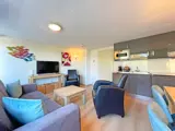 De woonkamer is voorzien van een zithoek met tv. Er is een eethoek. De open keuken is ingericht met een koelkast, vaatwasser, koffiezetapparaat, Nespresso, waterkoker en magnetron. Een trap vanuit de toegangshal brengt je naar de slaapkamers. Er zijn twee slaapkamers met elk 2 eenpersoons boxspringbedden. De badkamer heeft een douche, wastafel en toilet. Dit appartement ligt op de 1e etage, heeft een balkon en uitzicht over de weilanden en naar het bos.
