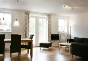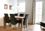 De woonkamer van dit geschakelde vakantiehuis heeft een zithoek met een grote 5-persoons hoekbank en een LED-TV. De open keuken is ingericht met een koelkast, vaatwassen en oventje. De badkamer heeft een ligbad, een douche en een dubbele wastafel. Het toilet is apart. Op de bovenverdieping zijn twee ruime slaapkamers. Kamer 1 heeft een 2-persoonsbed en op kamer 2 staan een 2-persoonsbed en een 1-persoonsboxspringbed. In kamer 1 kan eventueel nog een kinderbedje geplaatst worden. Op de gang staat een wasmachine. Dit vakantiehuis heeft een groene tuin op het zuiden met tuinmeubilair.