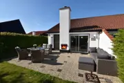 De keuken van dit geschakelde vakantiehuis is ingericht met een inbouwkoelkast met vriesvak, vaatwasser, inbouw combioven, koffiezetapparaat en Senseo. De woonkamer heeft een zithoek, open haard, flatscreen smart tv, radio/cd-speler en eethoek. De badkamer heeft een inloopdouche, badkamermeubel met laden en toilet. In de berging staat een wasmachine. Op de bovenverdieping zijn twee slaapkamers, een met 2 eenpersoons boxspringbedden en een flatscreen tv aan de wand. De andere slaapkamer heeft 2 boxspringbedden. Dit vakantiehuis heeft een volledig afgesloten, beschutte tuin met een afsluitbaar hek en een terras op het zuiden. Tuinmeubilair, een loungeset en luxe dining loungeset, zijn aanwezig.