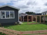 Het chalet is stijlvol en compleet ingericht, met een comfortabele zithoek. 1 slaapkamer met 2x1 pers. bedden die tegen elkaar aan staan. In de 2e slaapkamer staat een stapelbed en 1x 1 pers. bed. De badkamer heeft een prettige douche en toilet. Op het ruime, zonnige terras staat een tuinhuis met overkapping. Een tuinscherm zorgt voor luwte en privacy. Onder de overkapping staat een grote hoekbank en er zijn relaxstoelen.