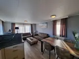 Entree, woonkamer met comfortabele bank en grote TV met Nederlandse een Duitse TV zenders. Open, compleet ingerichte keuken. Je beschikt over 2 ruime slaapkamers aanwezig met elk twee eenpersoons bedden. De badkamer heeft een douche, toilet en wastafel. Separaat tweede toilet. Dit vrijstaande, comfortabele chalet staat aan de rand van Chaletpark Bregkoog, tegenover de wasserette van het park.