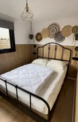 De woonkamer van dit rustig gelegen chalet heeft een 2- en 3- zitsbank, een gezellige gashaard, tv, radio en eethoek. In de keuken vind je een Senseo koffiezetapparaat, magnetron, waterkoker en koelkast. Er zijn 2 slaapkamers. De kinderkamer heeft 3 bedden (70x190) en in de ouderslaapkamer staat een tweepersoonsbed van (140x200). De badkamer heeft een douche, wastafel en toilet. Ons chalet staat op een ruim perceel met vrij uitzicht op de speeltuin.