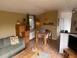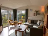 De woonkamer is voorzien van een fijne zithoek met comfortabele hoekbank, tv en een eethoek. De grote glazen deuren zorgen voor een serre-effect en voor een lichte ruimte. De keuken is ingericht met een vaatwasser, combi-oven, koelkast met vriesvak, waterkoker, filterkoffieapparaat en Senseo. Er zijn twee slaapkamers waarvan een met 1 tweepersoons bed (140x200) met 1 persoons dekbedden. In de andere slaapkamer staat een stapelbed en een eenpersoons bed. De badkamer heeft een douche, wastafel en toilet.