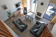 De open keuken van dit vrijstaande vakantiehuis is ingericht met vaatwasser, magnetron, oven en broodrooster. De woonkamer heeft zithoek met open haard, tv, radio, cd-speler en dvd-speler. Tevens is er een eethoek. De badkamer heeft een douche. Er is een apart toilet. Boven zijn twee slaapkamers. Rondom dit vakantiehuis ligt een tuin. Er is een terras met tuinmeubilair.