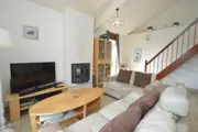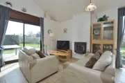 De open keuken van dit vrijstaande vakantiehuis is ingericht met een koelkast, combimagnetron, vaatwasser, koffiezetapparaat en eethoek. De woonkamer heeft een zithoek met open haard, tv en stereo. Er is een slaapkamer met 1 stapelbed. De badkamer heeft een douche, wastafel en toilet. In de berging staan een wasmachine en droger. Op de bovenverdieping zijn twee slaapkamers met elk 2 eenpersoons bedden. Dit vakantiehuis heeft een tuin met terras. Tuinmeubilair is aanwezig.