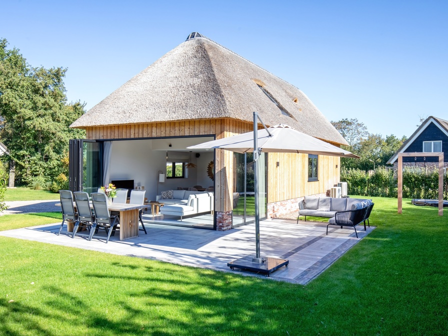 Ruime, lichte woonkamer met gezellige zithoek, smart-tv en Sonos speaker. Door de prachtige vouwdeuren kan de terraszijde van het huis geheel open, waardoor buiten en binnen een geheel worden. Open keuken voorzien van o.a. inductiekookplaat, vaatwasser, vriezer, combimagnetron, Nespresso-apparaat en Quooker. Slaapkamer met tweepersoons bed (180 x 200) en eigen badkamer met douche. Separaat toilet. Op de eerste etage een slaapkamer met een tweepersoonsbed (180x210) en een slaapkamer met twee eenpersoons bedden (90 x 210), die ook tegen elkaar geschoven kunnen worden. Badkamer met douche en toilet. De ruime tuin is voorzien van terras met tuinmeubilair, trampoline en schommel.