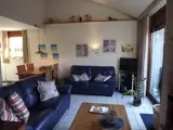 De open keuken van dit vrijstaande vakantiehuis is ingericht met vaatwasser en combimagnetron. Tevens is er een eethoek. De woonkamer heeft een zithoek met open haard, tv en dvd-speler. Op de begane grond is een slaapkamer met 1 eenpersoons bed. De badkamer heeft een douche en toilet. In de berging staat een wasmachine. Op de bovenverdieping zijn twee slaapkamers met elk 2 eenpersoons bedden. Dit vakantiehuis heeft een tuin met terras. Tuinmeubilair is aanwezig.