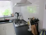 De woonkamer heeft een zithoek met tv. Er is ook een eethoek. De open keuken is ingericht met 5-pitsfornuis, koelkast met vriesvak, heteluchtoven, vaatwasser, koffiezetapparaat, Nespressomachine en waterkoker. De badkamer heeft een douche en toilet. Op de bovenverdieping zijn twee slaapkamers, waarvan een met tweepersoons bed (160 x 200). De andere slaapkamer heeft 2 eenpersoons bedden (80 x 200). Er zijn eenpersoons dekbedden, vier stuks en er is een tweepersoonsdekbed. Dit vakantiehuis heeft een tuin met terras, en een overdekt terras. Tuinmeubilair is aanwezig.
