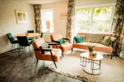 De woonkamer heeft een gezellige zit- en eethoek, televisie en een open haard. De keuken is o.a. voorzien van een vaatwasser en oven. Er zijn 3 slaapkamers, waarvan 1 op de begane grond met een tweepersoonsbed. Op de eerste verdieping een slaapkamer met tweepersoonsbed en een slaapkamer met een eenpersoonsbed. Op beide verdiepingen bevindt zich een badkamer met een douche, wastafel en toilet. Dit vrijstaande huis heeft een zonnige patio met overkapping om waar je gezellig kunt barbecuen. Ook heeft het huis een tuin met terras.