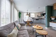 Woonkamer met zithoek, eethoek en flatscreen-tv. Open, compleet ingerichte keuken met koelkast met vriesvak, afwasmachine, oven en koffiezetapparaat. Slaapkamer met tweepersoonsbed op de begane grond. Badkamer met douche, toilet en wastafel. Er is een apart tweede toilet. Op de eerste verdieping zijn een tweede en een derde slaapkamer met elk twee eenpersoonsbedden. Hier is ook een tweede badkamer met douche, wastafel en toilet. Tuin met terras en tuinmeubels.