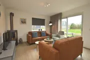 Dit vrijstaande vakantiehuis ligt aan het water. De woonkamer heeft een eethoek en zithoek met gashaard, digitale tv, dvd-speler en radio/cd-speler. De keuken is ingericht met koelkast,5-pits gaskookplaat, koffiezetapparaat, oven, magnetron en vaatwasser. Er is een slaapkamer met 2 eenpersoons boxspringbedden (80 x 200). De badkamer heeft een douche, wastafel en toilet. In de berging staan een wasmachine, droger en centrifuge. Op de bovenverdieping zijn twee slaapkamers met elk 2 eenpersoons boxspringbedden (80 x 200) en een wastafel. De badkamer heeft een douche en wastafel. Het toilet is apart. Dit vakantiehuis heeft een tuin met terras. Tuinmeubilair is aanwezig.