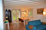 De benedenverdieping bestaat uit een gang, toilet, woonkamer en keuken. De woonkamer heeft een eetgedeelte, grenzend aan de keuken, met openslaande deuren. Het zitgedeelte is aan de voorkant van de woning met twee openslaande deuren. Naast een tv en radio/cd speler, is er zowel een vaste als wifi internetaansluiting. De half open, compleet ingerichte keuken is voorzien van een vijf-pits gasstel, oven/magnetron, afwasmachine, koelkast met grote vriezer, Nespresso en diverse andere keukenapparatuur. Ook de wasmachine is in de keuken. De bovenverdieping bestaat uit een overloop, drie slaapkamers en een badkamer. Een grote slaapkamer met een tweepersoons-boxspringbed (twee matrassen). In deze kamer is genoeg ruimte voor een extra kinderbedje. Twee kleinere slaapkamers, waarvan in één kamer het eenpersoonsbed met onderschuifbed als tweepersoonsbed gebruikt kan worden. De andere slaapkamer heeft twee eenpersoonsbedden. De badkamer heeft een douche, een ruim badmeubel met wasbak en verwarmde spiegel en een tweede toilet. Aan beide zijden van het huis zijn terrassen met tuinmeubilair.