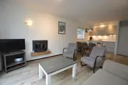 De woonkamervan deze vrijstaande bungalow heeft een eethoek en zithoek met open haard, tv en cd-speler. De open keuken is ingericht met koelkast, 4-pits gaskookplaat, magnetron, vaatwasser en koffiezetapparaat. Er zijn drie slaapkamers, waarvan twee met 2 eenpersoons boxspringbedden. In de derde slaapkamer staat een stapelbed. De badkamer heeft een bad, douche, wastafel en toilet. Deze bungalow heeft een afgesloten tuin met een terras op het zuiden. Tuinmeubilair is aanwezig.