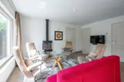 De woonkamer van deze vrijstaande bungalow heeft een zithoek met tv, sfeerhaard en een eethoek. De open keuken is onder andere ingericht met koelkast met vriesvak, 5 pits gasfornuis, waterkoker, Senseo, koffiezetapparaat en combi magnetron. Er zijn drie slaapkamers waarvan twee met 2 eenpersoons boxspringbedden, de 3e slaapkamer heeft een stapelbed. Er zijn 2 badkamers. Badkamer 1 heeft douche en wastafel en een separaat toilet. Badkamer 2 heeft een douche met douchezitje, aangepast toilet met beugels en wastafel. Deze bungalow heeft een tuin met terras. Tuinhuisje beschikt over stroomaansluiting ook tuinmeubilair is aanwezig.