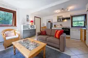 De woonkamer van dit vrijstaande vakantiehuis heeft een eethoek en zithoek met tv. De keuken is ingericht met onder andere een vaatwasser, magnetron en koel/vriescombinatie. Er zijn drie slaapkamers met in totaal 5 eenpersoons bedden. De badkamer heeft een douche. Het toilet is separaat. Dit vakantiehuis heeft een tuin met terras. Tuinmeubilair is aanwezig.