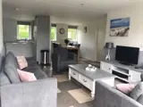 De woonkamer van deze vrijstaande bungalow heeft een zithoek met tv en audioset en een eethoek. De open keuken is voorzien van gaskookplaat, vaatwasser, koelkast met vriesvak, combimagnetron, koffiezetapparaat, waterkoker en broodrooster. Er zijn drie slaapkamers met elk twee 1-persoons boxspringbedden. Een van de slaapkamers heeft een wastafel. Er is een badkamer met ligbad, aparte douche en wastafel. Het toilet is apart. Deze woning heeft een tuin met terras. Tuinmeubilair is aanwezig. Op de bedden liggen synthetische dekbedden. Er is vloerverwarming.