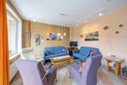 De woonkamer van dit vrijstaande vakantiehuis heeft een zithoek met tv en een eethoek. De open keuken is ingericht met oa koelkast, vriezer, magnetron en vaatwasser. Er zijn drie slaapkamers (waarvan een op de begane grond) met elk twee eenpersoons bedden. De badkamer op de begane grond heeft een douche, toilet en wasbak. Op de bovenverdieping zijn twee slaapkamers. Op de bovenverdieping bevind zich nog een separaat toilet. Dit huis heeft een heerlijke tuin met terras. Tuinmeubilair is aanwezig.