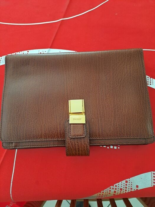 Verkoop bruine herentas in rundleer. Het bevat een chequeboekhouder, kaarthouder, munthouder, pennenhouder.