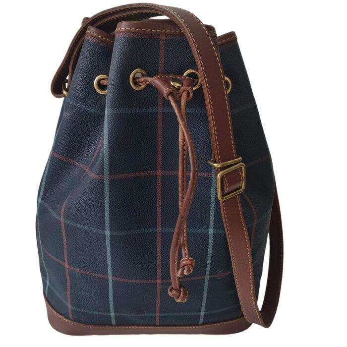 Burberry schoudertas van blauw en bruin leer in goede gebruikte staat met wat gebruikssporen