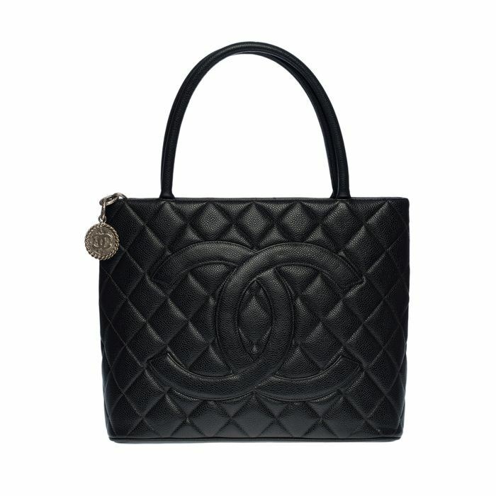 Prachtige Chanel Cabas Médaillon tas in zwart kaviaarleer, hardware in grijs ruthenium metaal, dubbel handvat in zwart kaviaarleer waardoor de tas zowel in de hand als op de schouder gedragen kan worden
