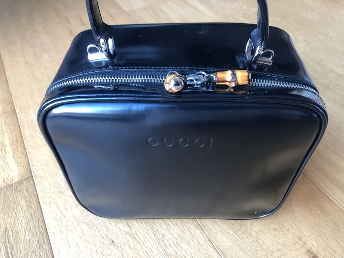 schattige zwarte Gucci tas zeer elegant en in goede staat met zijn typische bamboe handvatten van het merk