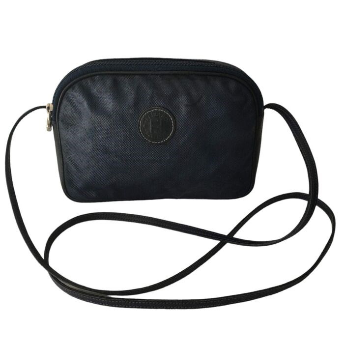 Fendi schoudertas in canvas met blauwe leren afwerking in goede gebruikte staat met gebruikssporen
