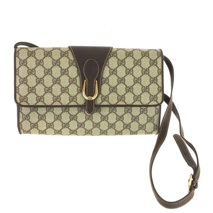 Vintage GUCCI Monogram GG schoudertas is te koop. Het is een vintage GUCCI-tas die in de jaren 80 is vervaardigd en nooit is gebruikt. Het is in grote vintage staat. Alle hardware is in glanzende toon zonder krassen. De schouderband is eraf zodat je deze tas ook als clutch kunt gebruiken. Magneet sluiting. Binnenkant heeft kleine vlekjes maar over het algemeen is hij in nieuwstaat. Zeer schoon, geen geur.