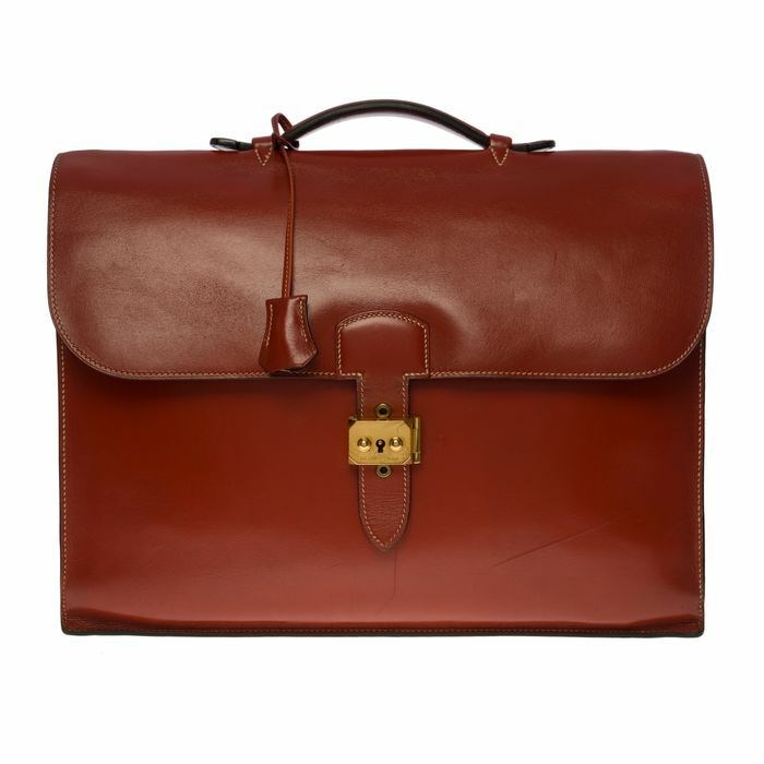 Zeer verfijnde Hermès Sac à Dépêches aktetas in steenrood kistleer, hardware in verguld metaal, eenvoudig handvat in steenrood leer waardoor de tas in de hand gedragen kan worden