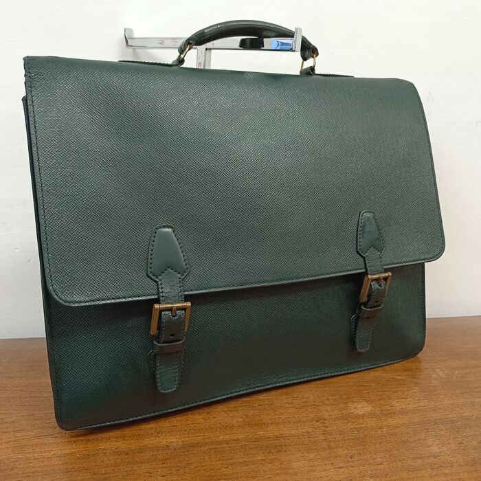 Louis Vuitton mooie grote business tas, Tashkent model in Taiga groen leer. Gemaakt in Frankrijk Code VI0947. In goede staat zoals gedetailleerd op de foto's. Wat ouderdomssporen op het leer, elk detail is gefotografeerd. Vier compartimenten. Ritstrekker vervangen. Afmetingen breedte 42, hoogte 34, diepte 11. Verzending per vrachtwagen en traceerbaar.