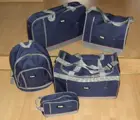 Zeer complete 5 delige travelbag set in hoofdkleur donkerblauw.