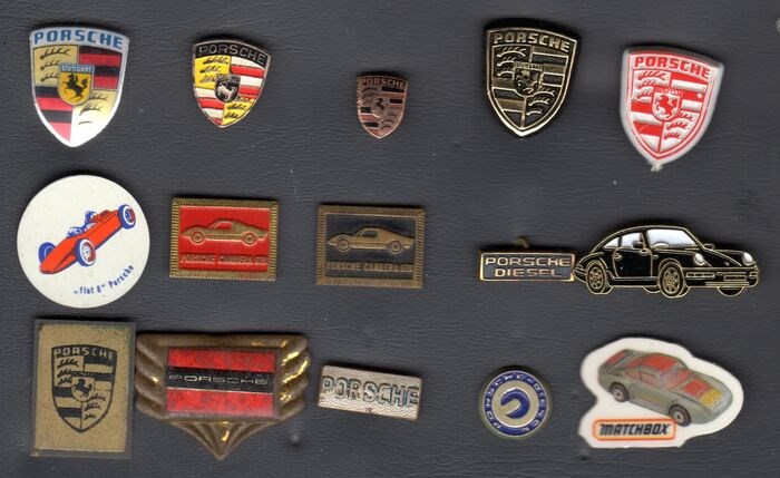 Collectie van 14 speldjes en 1 pin PORSCHE