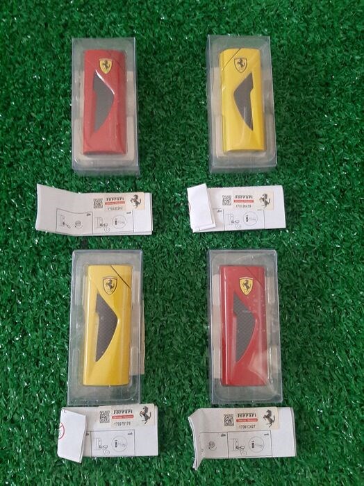 4 metalen Ferrari-aanstekers (2 in rood en 2 in geel) in beperkte oplage met originele Ferrari-licentie die de originaliteit van het product bevestigt.