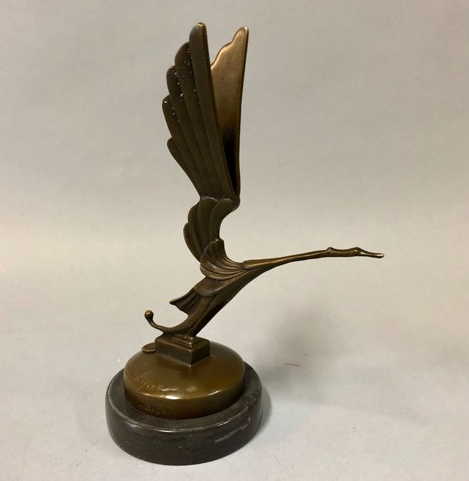 Bronzen automascotte naar het ontwerp van Lalique. Origineel stond op motorkap van het relatief onbekende merk Hispano-Suiza.