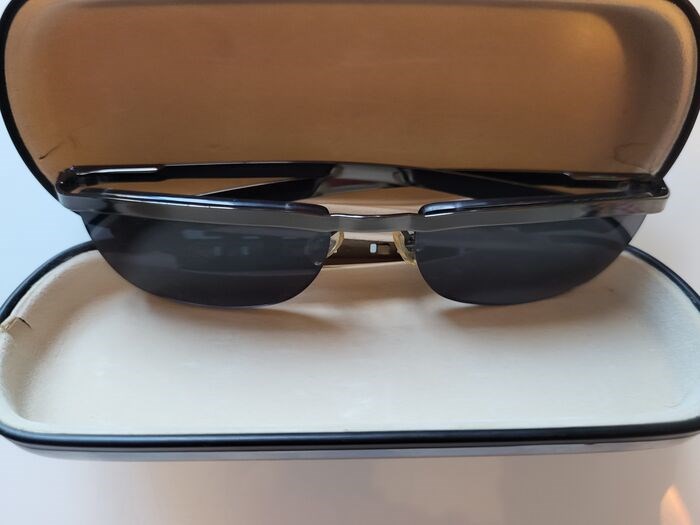 Zwarte Mercedes merk zonnebril. Geleverd met doos die, in tegenstelling tot de bril, niet in uitstekende staat is. Het gewicht is 100 gram en wordt per koerier verzonden