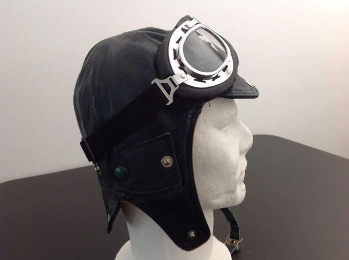 Leather Helmet inclusief new Racing/Flying Goggle 1930-1960 style.
