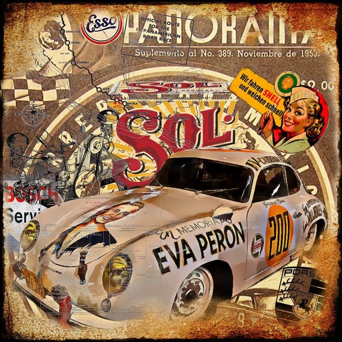 Originele LUC BEST Giclée - "Porsche 356 EVA PERON"