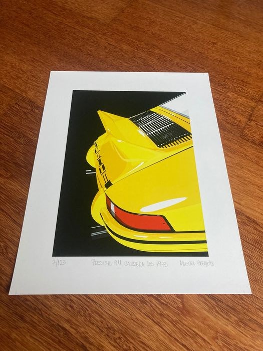 De tekening toont een detail van een Porsche 911 Carrera RS uit 1973
