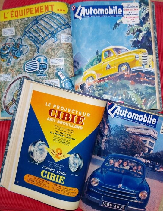 Vintage gebonden collectie van de uitgever van het tijdschrift L'Automobile, van november 1950 (nr. 55) tot oktober 1952 (nr. 78), dus in totaal 24 nummers.