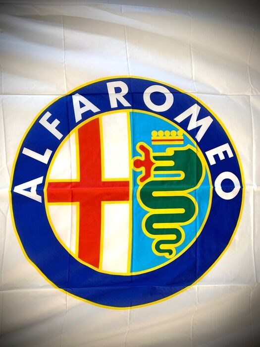 Schitterende en onbereikbare originele ALFA ROMEO vlag van grote afmetingen (196x138) uit de jaren 90 exclusief geproduceerd voor Alfa dealers tijdens de SZ Zagato periode. Alleen voor foto's uit de verpakking gehaald, het is onberispelijk, geen vlekken, geen scheuren, de witte stof is puur en glanzend en de merkkleuren zijn zeer helder. Gezien de grootte heeft het een sterke visuele impact. Versterkte naden en haak om op te hangen. Ik verzend zorgvuldig verpakt, maar alleen binnen Europa. Liefhebbers van Biscione, mis het niet, gelukkig bieden!!