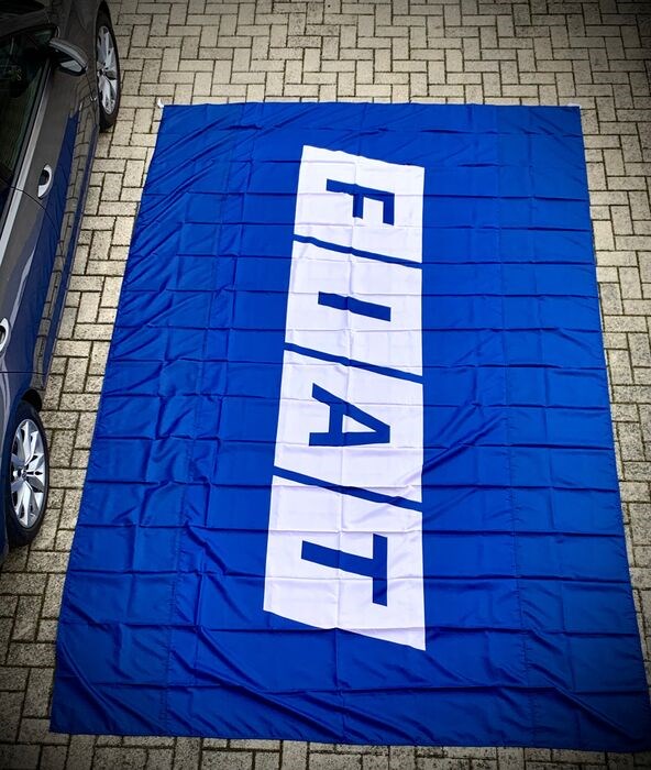 Majestueuze FIAT-vlag 400x260 cm, gebruikt bij de belangrijkste nationale evenementen (Giro d'talia, F1 Grand Prix, etc.) nieuw. De stof is zacht en zijdeachtig en de kleuren zijn helder. Alleen voor foto's uit de tas gehaald, geen vlekken of scheuren, wordt geleverd met touwtjes om op te hangen. Ik verzend zorgvuldig verpakt. Het is een zeldzaamheid en graag geboden aan alle fans van het nationale merk!