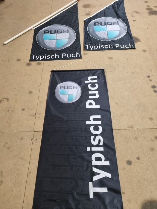 *Uithang vlag Puch aan vlaggenstok>*Uithang vlag Puch, afm. 145x70cm