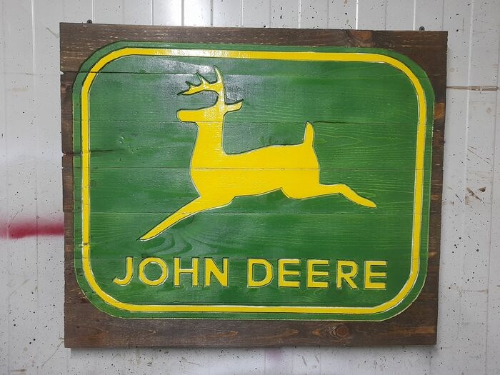 john deere wandbord van 47x57 volledig gegraveerd en met de hand geschilderd