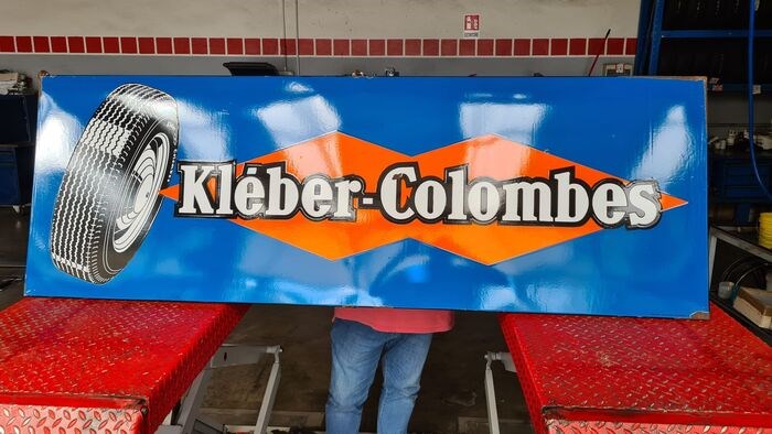 Fantastisch geëmailleerd bord voor buiten met daarop de oude Kleber Colombes loho uit de jaren 50/60, in zeer goede staat, perfect bewaard gebleven, met kleine defecten zoals te zien op de foto's, één bovenste bevestigingshaakje ontbreekt.Zeer glanzend emaille omdat het binnenin is gemonteerd. Enkele kleine esthetische gebreken gezien de leeftijd.