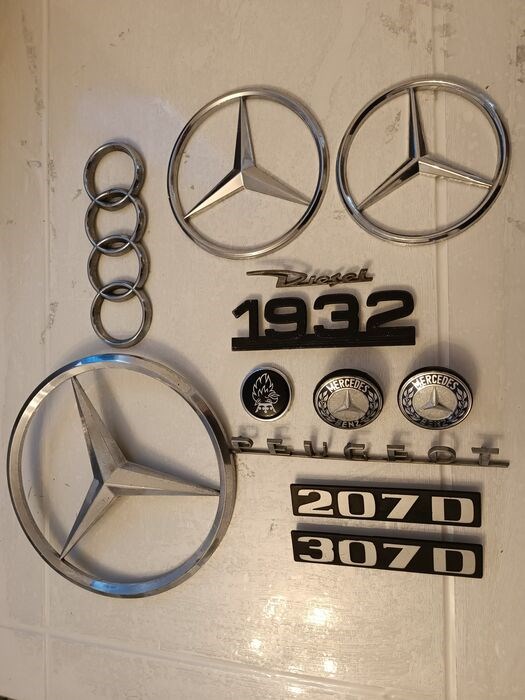 - Mercedes: 2 kleine badges, 2 middelgrote en 1 grote,